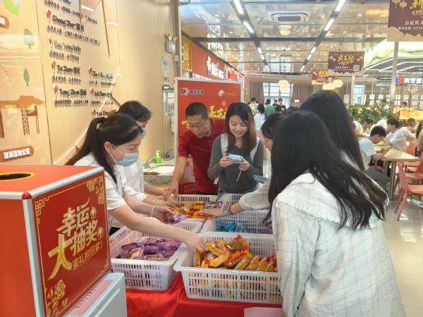 “明月千里寄相思 中秋佳节盼团圆”,悬挂的横幅随风轻摆,烘托出浓浓的节日氛围。各餐厅活动形式丰富,无论是中秋餐券生活用品等的抽奖、巨型蛋糕分享还是月饼派发活动,师生们均踊跃参与,兴致盎然,现场欢声笑语,氛围温馨。这场精心筹备的中秋系列活动,让师生们在忙碌的校园生活中停下脚步,感受到后勤服务的温暖关怀,也在潜移默化中传承着中华优秀传统文化。