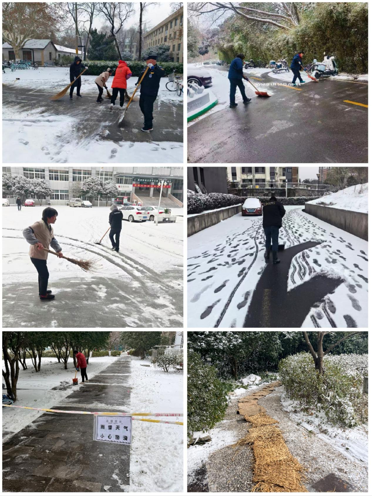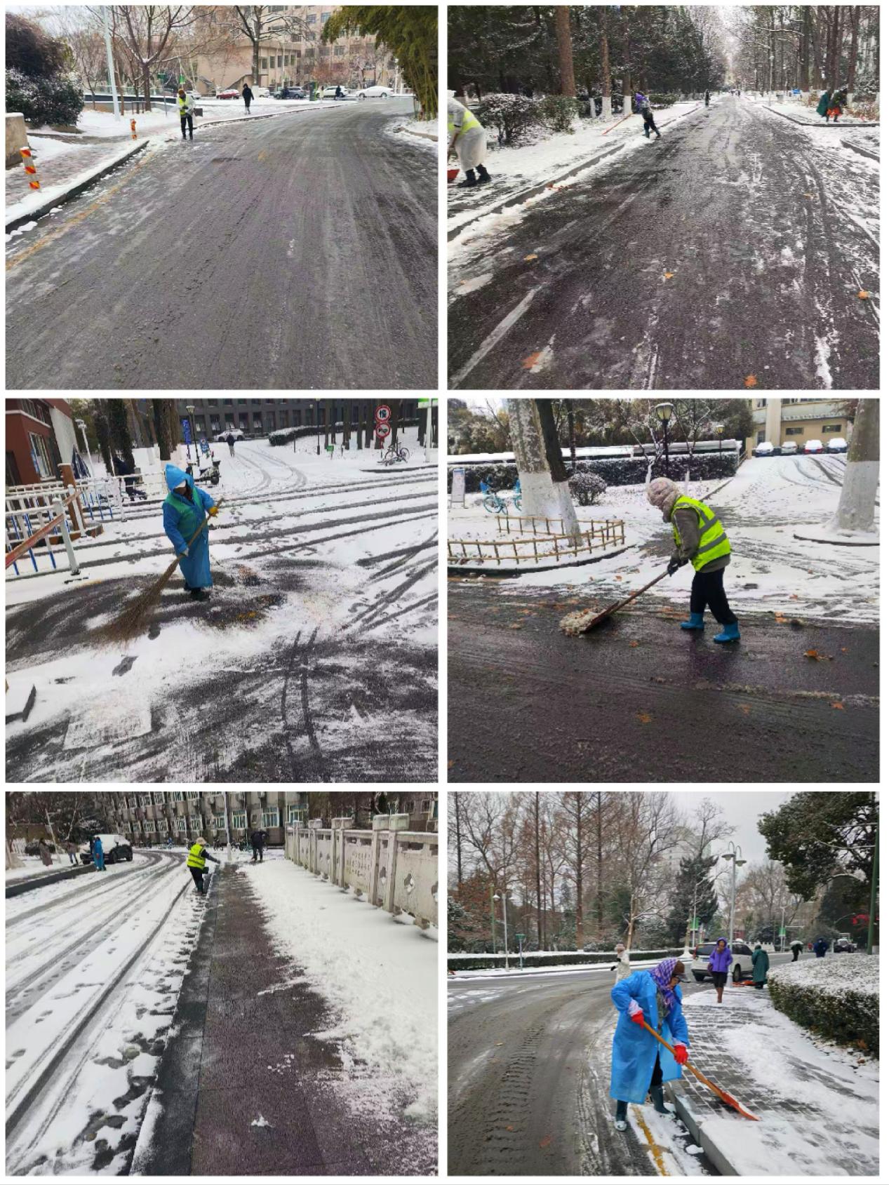 1月20日,南京降雪来袭。我校高度重视,多部门联动开展扫雪除冰工作。后勤管理处、后勤服务总公司迅速响应,第一时间组织人员清扫积雪,全力保障校园道路畅通,确保师生出入安全。
